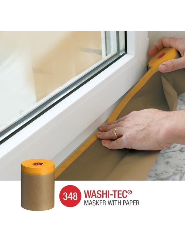 Deze papieren masker met WASHI-TEC® plakband zorgt voor de scherpste lijnen en gemakkelijke maskering van vensterbanken, plinten, etc. in één handeling. De masker bestaat uit WASHI-TEC® plakband met ongebleekt soda maskeerpapier (40 g / m²). Het product is UV-bestendig en milieuvriendelijk. Daarnaast is de masker bestand tegen temperaturen tot 100 ° C.