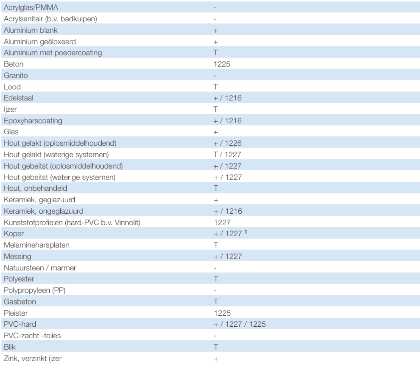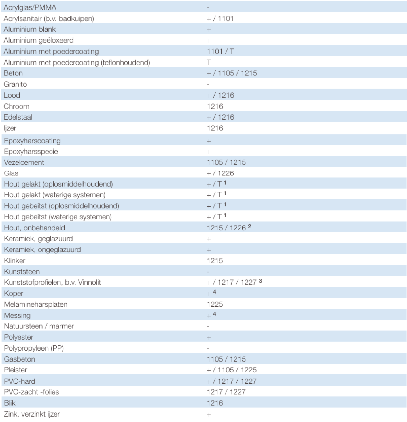 3) Een neutrale siliconen hecht prima op non-ferro metalen. Tijdens het uitharden is dan een ongehinderde luchttoevoer nodig.