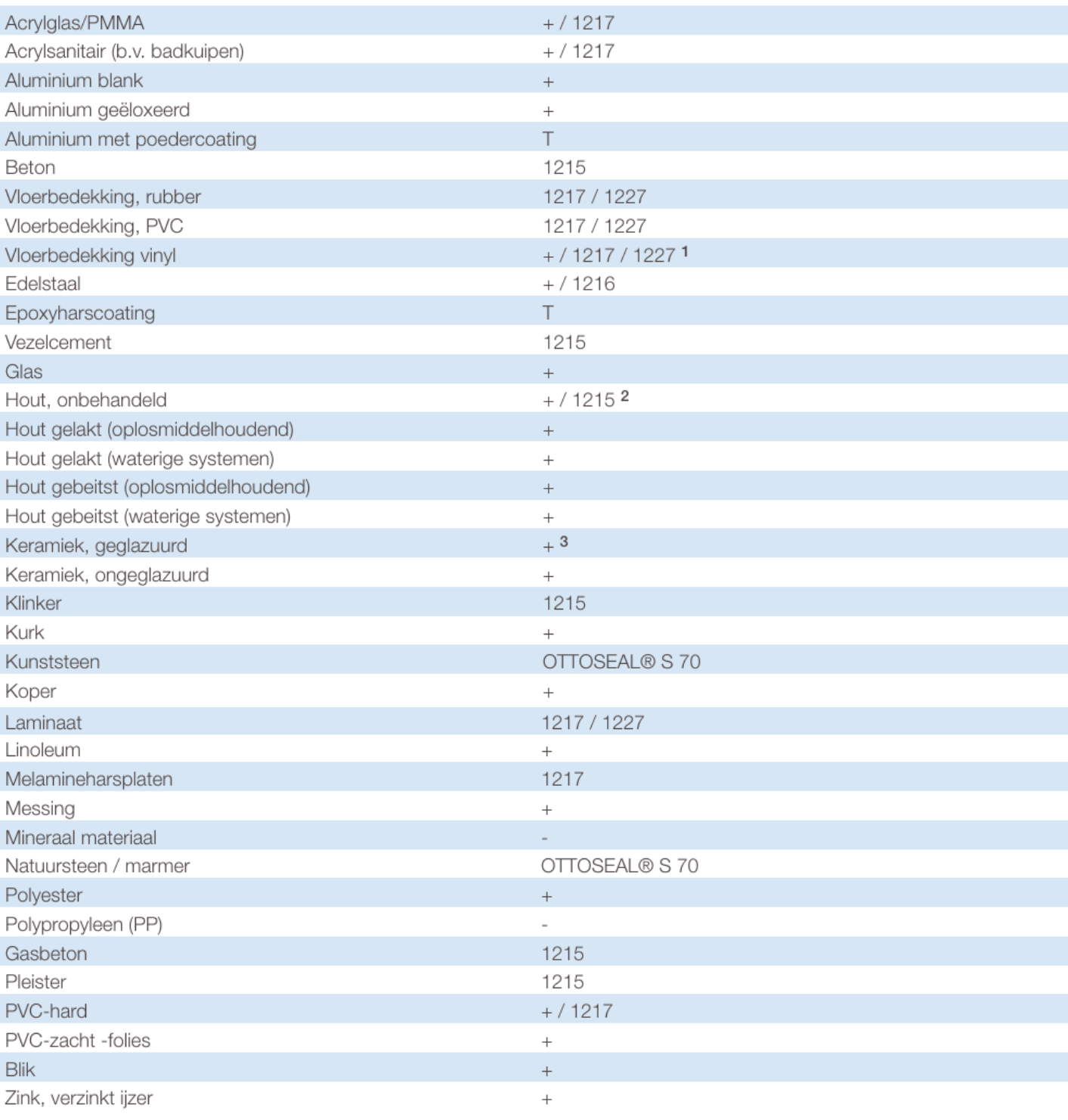 4) Bij natuursteen kan een primer noodzakelijk zijn. Dit hangt vooral af van de omgeving waarin het staat. Bij natuursteen dat regelmatig in contact is met water (bijvoorbeeld in douchecellen) raden wij aan de Ottoprimer 1216 aan. Deze is speciaal ontwikkeld voor het verbeteren van de hechting bij een constante waterbelasting.