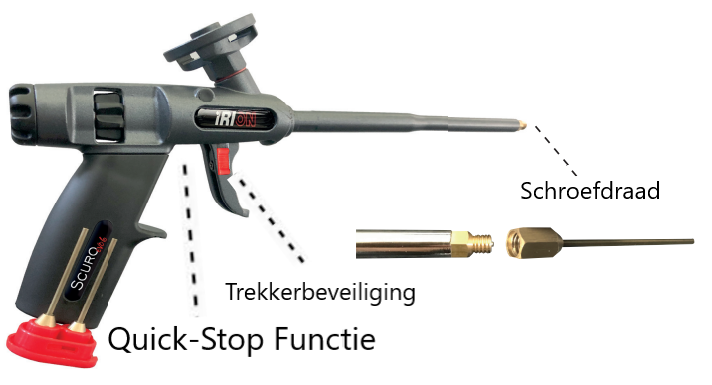 Het Irion Scuro Evo6 purpistool is nieuw op de markt en heeft een aantal functies die andere purpistolen niet hebben. Het is een hoogwaardig, stabiel metalen pistool met een ergonomische handgreep en trekker. Dit profesionele purpistool heeft een volledige antiaanbaklaag die zorgt voor het makkelijk schoon houden van de spuit. Door de versterkte adapter en 4-voudige afdichting heeft het de purspuit een extreem lange levensduur en is perfect voor de frequente gebruiker.Irion Scuro Evo6 purpistool - PUR pistolen: Purspuit - Kitcentrum.be