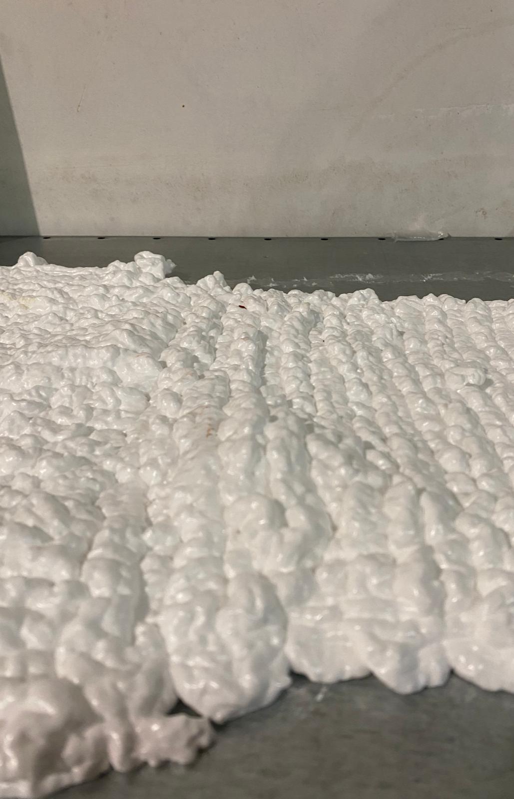 Oke, het grootste gedeelte is dus weg gesneden. Dan zie je waarschijnlijk dat het oppervlak nog niet schoon is. Gaan we oplossen. Breng een dikke laag purschuim verwijderaar aan met behulp van een kwast. Dit mag je 30 minuten tot een uur in laten trekken afhankelijk van de soort pur schuim reiniger en hoeveel pur er nog op zit.