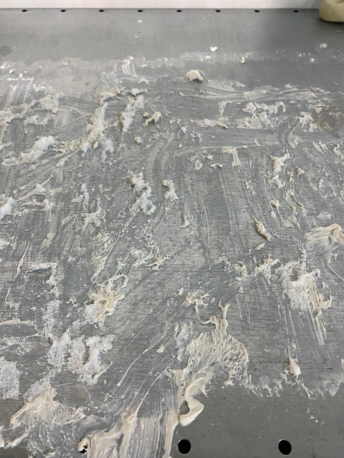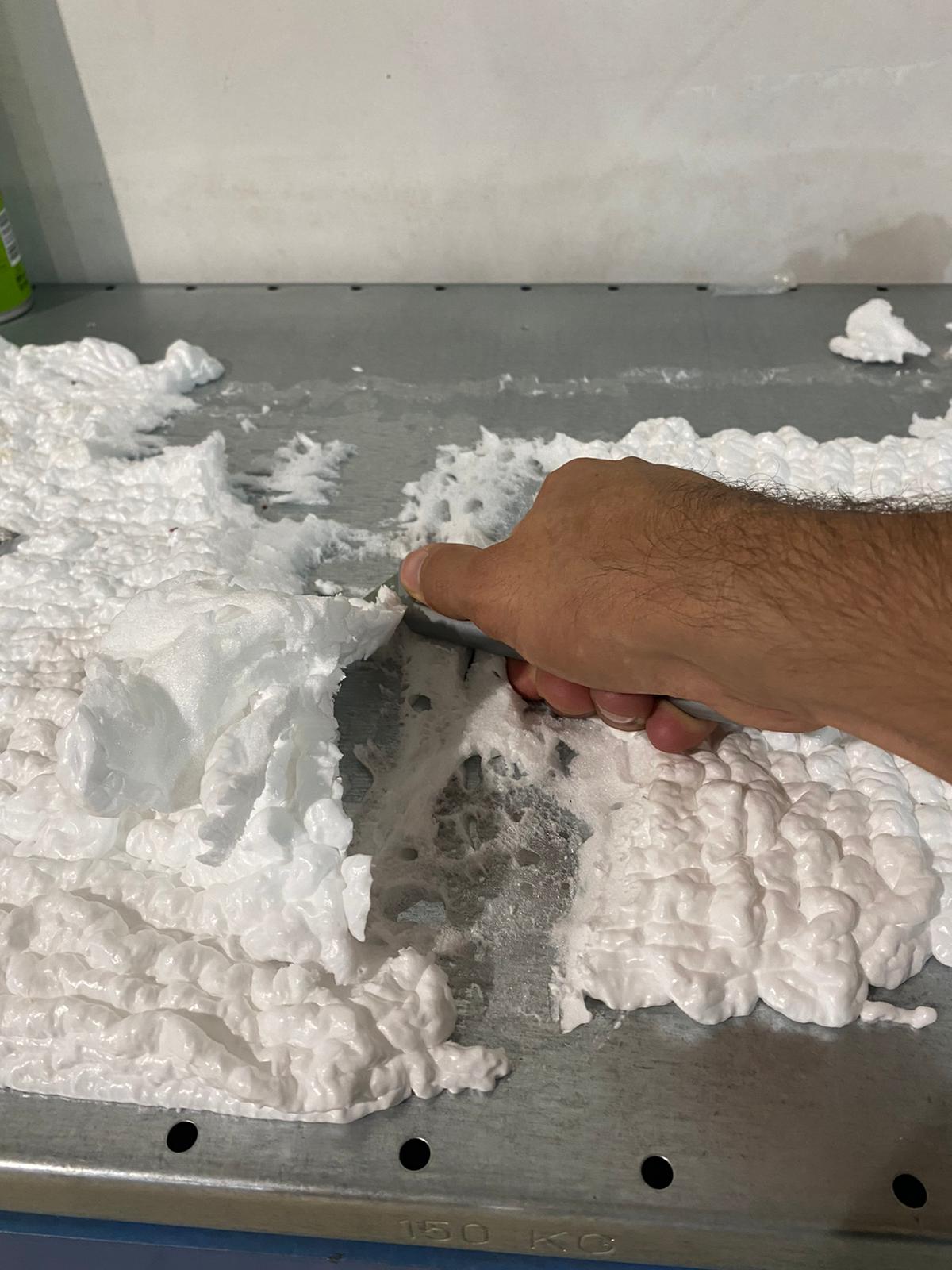 Het verwijderen van purschuim kan aan de hand van een aantal stappen. Met de juiste materialen is het purschuim verwijderd in ongeveer 60 minuten. Wij hebben hieronder purschuim aangebracht op een rvs plaat. Zo kunnen we jou duidelijk laten zien hoe je purschuim het beste kan verwijderen. Let op! Deze tactiek werkt alleen voor niet-poreuze ondergronden. Bij poreuze ondergronden moeten we je helaas teleur stellen. Hier kan je veel purschuim verwijderen, maar om deze ondergrond helemaal pur-vrij te krijgen is vrijwel onmogelijk.
