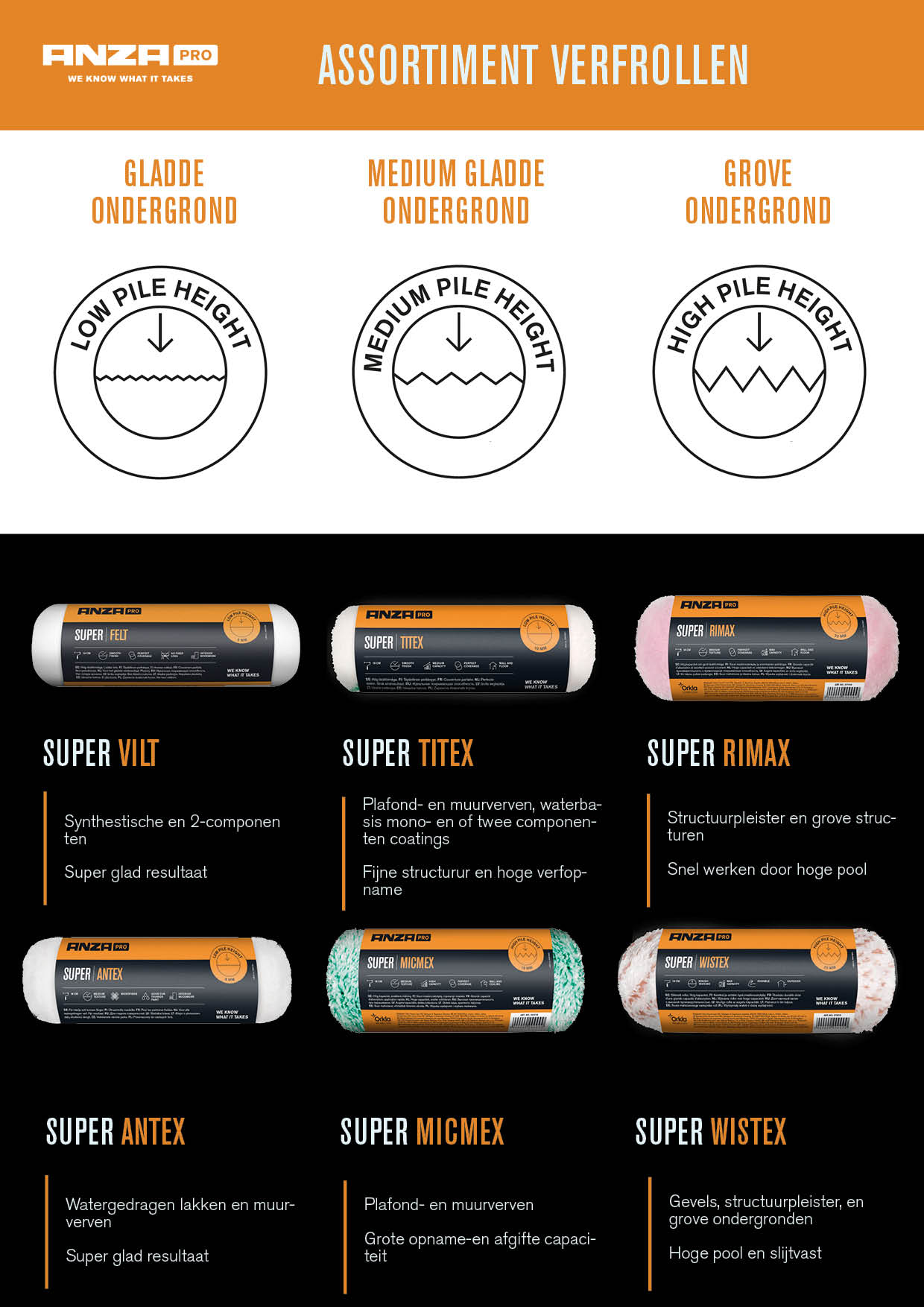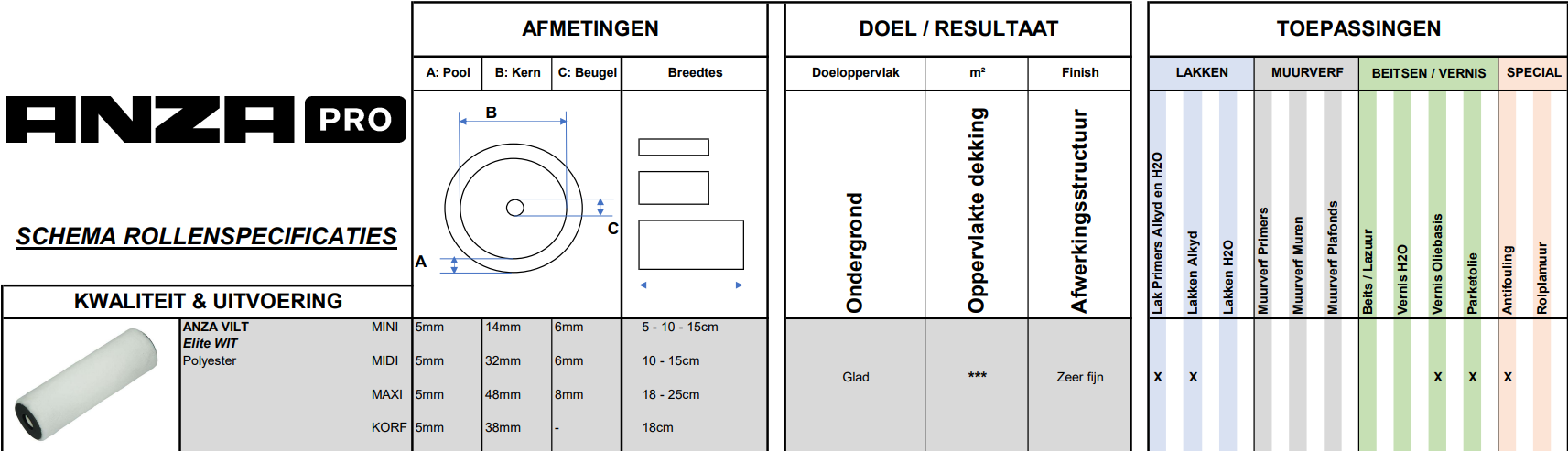 De Anza Viltroller Elite is perfect voor het aflakken van deuren, kozijnen en andere gladde ondergronden. Dit is DE verfroller van schilderend Nederland, neemt de verf goed op en laat minimaal structuur achter.